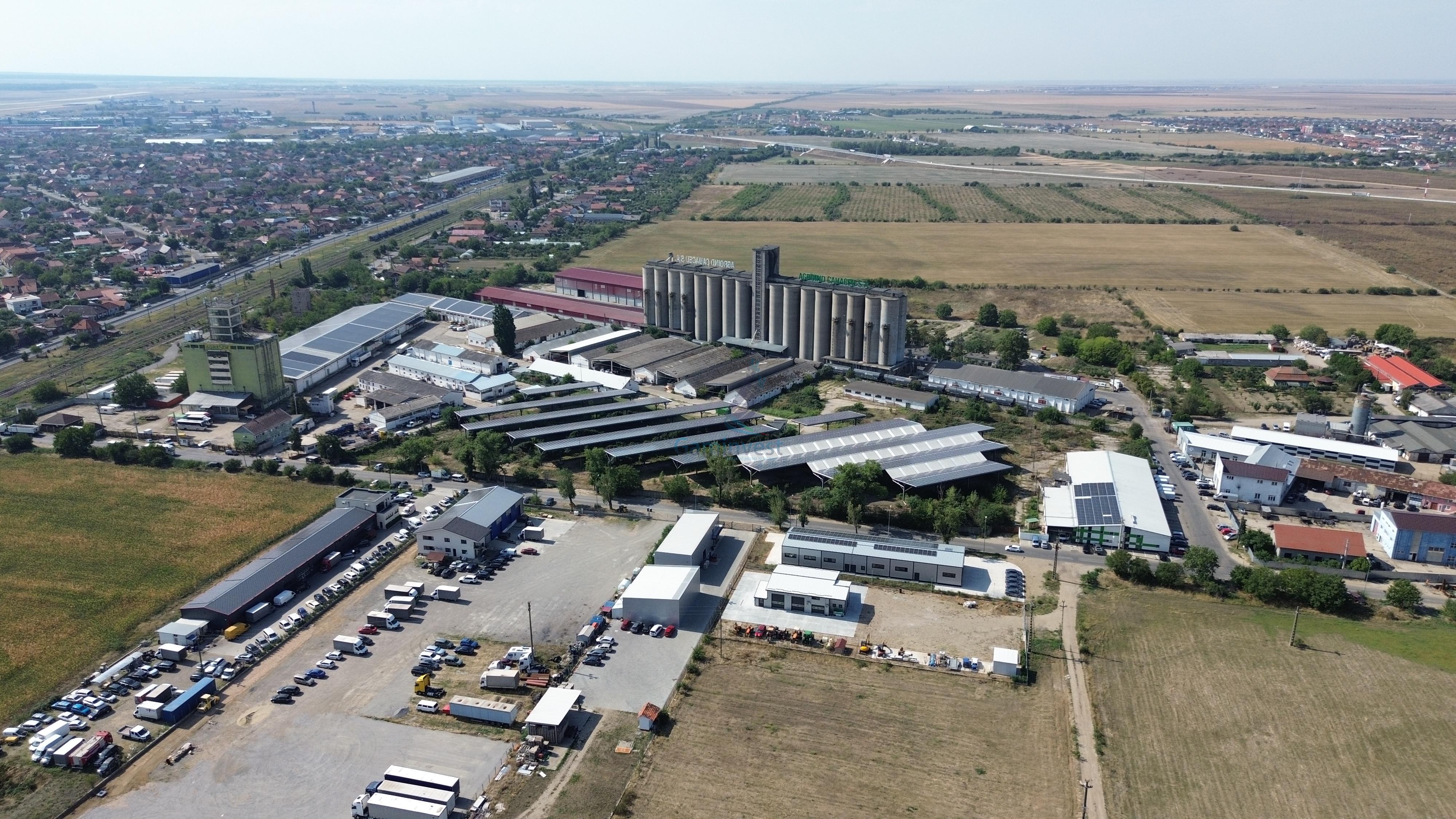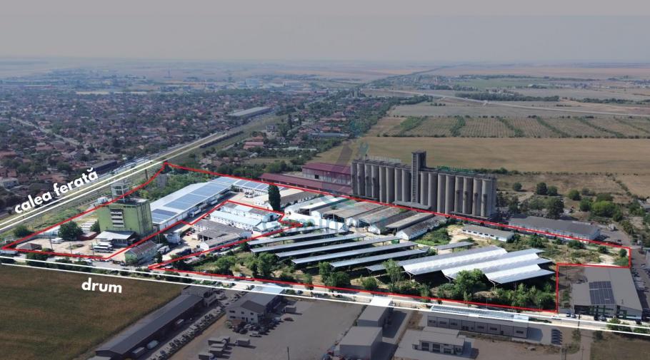 - Teren total: 57.210 mp cu front stradal de 448 m - Suprafață construită (clădiri): 24.900 mp. - Hale, ateliere si spatii de depozitare dotate cu rampa si cantar industrial - Siloz de 7000 mc. - Parcare: 8.000 mp, acoperită cu panouri fotovoltaice - Panouri fotovoltaice: cca. 5.000 bucăți, dispuse pe 15.000 mp (peste parcare și 3 clădiri) cu o putere instalată de 1,97 MW