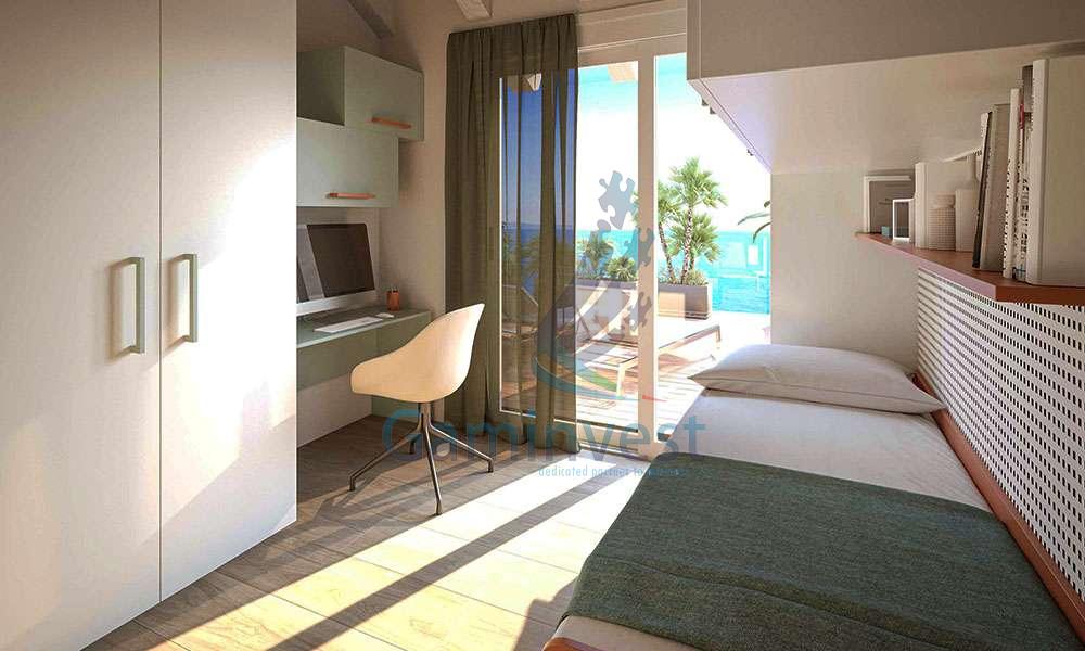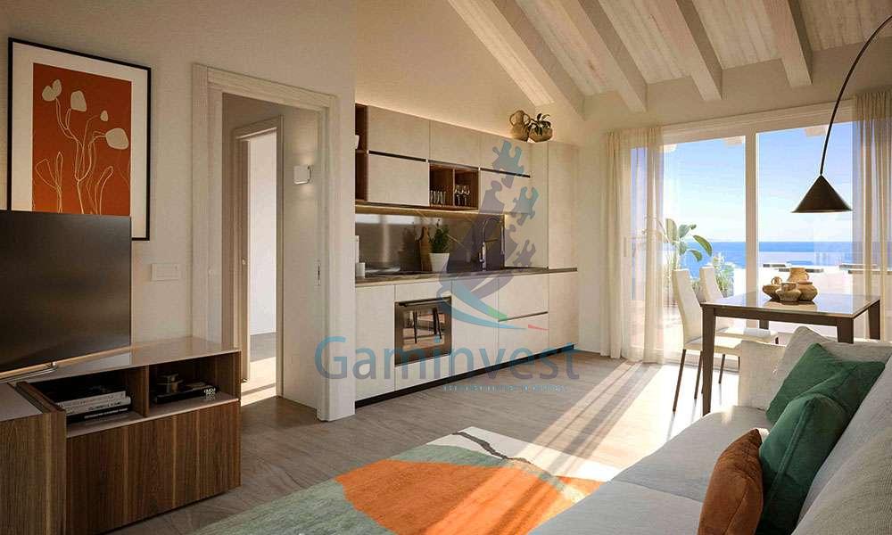 Con due camere da letto accoglienti, avrete spazio sufficiente per voi e i vostri ospiti. Il living con cucina vi accoglie con eleganza e praticità, rendendo ogni momento trascorso qui un’esperienza unica. Immaginate di cucinare con il profumo del mare nell’aria e di godere di serate conviviali con amici e familiari accompagnati da un panorama sul mare da fiaba.